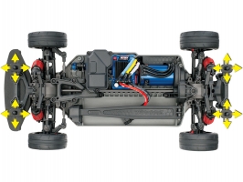 Skvostné šasi on-road RC modelu auta Traxxas 4-Tec 2.0 VXL. Měřítko 1:10, pohon všech kol, výkonný střídavý motor Velineon 550 a regulátor VXL-3s, elektronická stabilizace jízdy TSM. Rychlost až 112 km/hod. Kompatibilní se standardními on-road karosériemi.