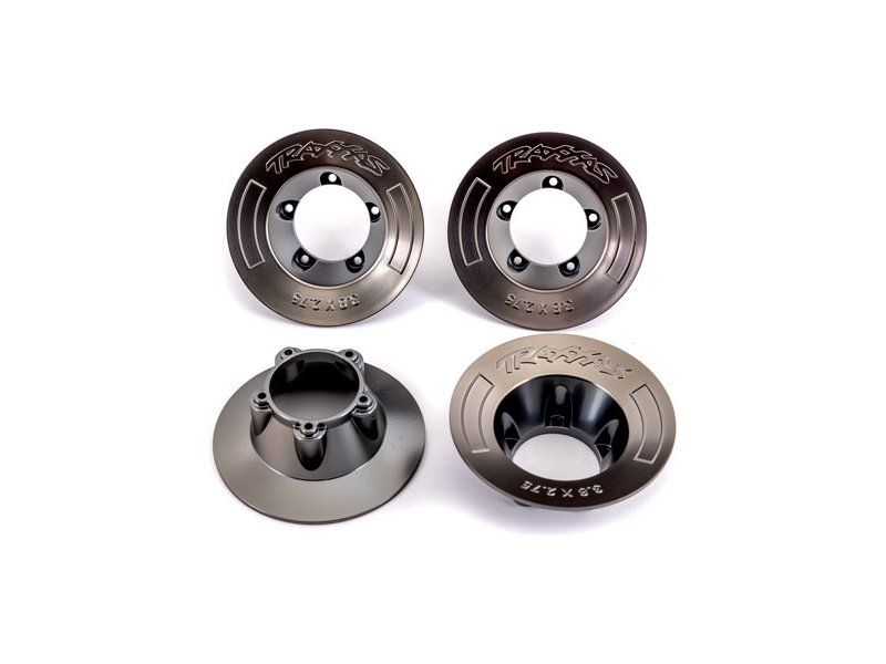 Designová poklice disku pro kolo Traxxas 3.8" Sledgehammer (#9572): polomatně černě chromovaná (4 ks).