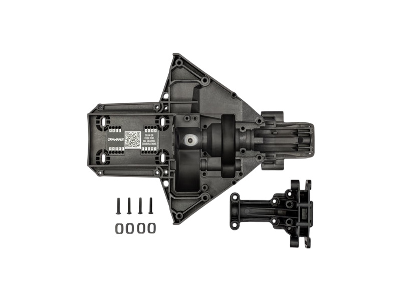 Náhradní díl pro RC model auta Traxxas X-Maxx 1:5 8S: přepážka šasi zadní (vrchní a spodní), včetně podložek motoru.