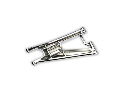 Náhradní díl pro RC modely aut Traxxas 1:5/1:6 (Funco): rameno podvozku dolní přední levé chromované (1). Vyrobeno z velmi odolného kompozitního materiálu, pro extrémní zatížení i v chladném počasí.
