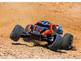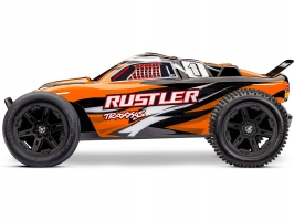 Traxxas karosérie Rustler oranžová (bezsponková), hotová nabarvená, aplikované obtisky. Vhoná i pro Rustler VXL. Včetně předního a zadního bezsponkového držáku karoserie.