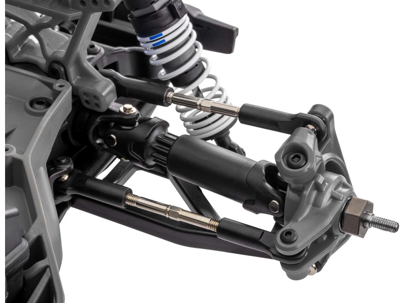 Dlouhý zdvih ramen tlumí i prudké nárazy a zlepšuje ovladatelnost modelu. V každé situaci tak bude mít přesnou a rychlou odezvu řízení. Pro nekončící zábavu jsou na podvozku použity nastavitelné olejové tlumiče.