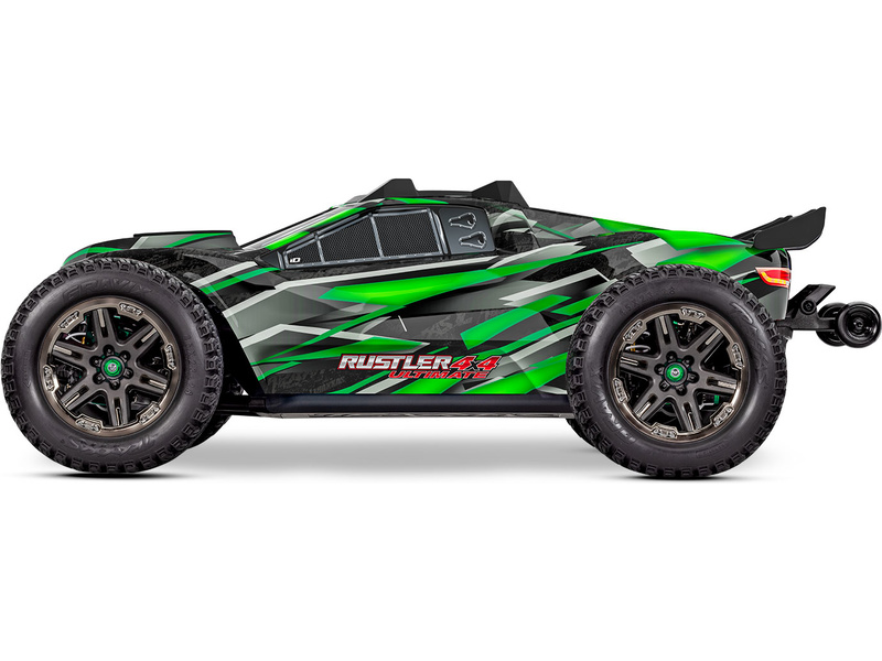 Model auta na dálkové ovládání Traxxas Rustler 1:10 ve vrcholné verzi Ultimate je naprostou špičkou v rychlosti, akceleraci a ovládání. Výkonný střídavý motor Velineon umožňuje rychlost až 104 km/h. K výborné ovladatelnosti přispívá náhon 4x4 a elektronická stabilizace jízdy TSM. Pro vysokou odolnost je na nápravách a šasi použita řada hliníkových dílů, které navíc dodávají unikátní design. Instalované jsou telemetrické senzory a bluetooth modul ve vysílačce, pomocí kterého lze připojit model s telefonem a aplikací Traxxas Link pro zobrazení telemetrie (rychlosti, otáček, teploty motoru, napětí akumulátoru). Použit je rychloupínací systém uchycení karoserie pro čistý vzhled a snadnou výměnu baterie.