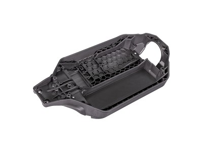 Traxxas šasi uhlově šedé. Lze použít 7-článkové NiMH baterie typu Flat. Univerzální použití baterií maximální délky 162 mm. Nutno použít s dílem TRA7430R a TRA6726X.