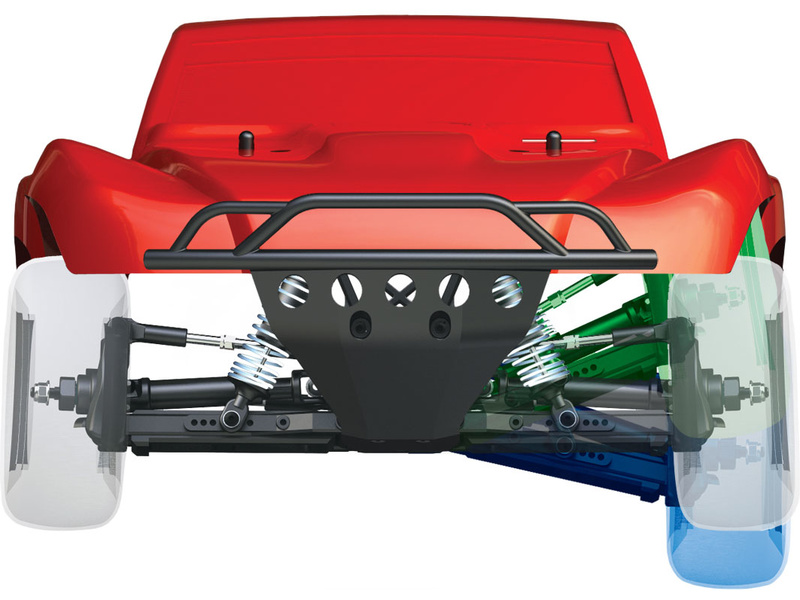 Výborná konstrukce modelu Slash byla zachovaná, včetně modulární konstrukce šasi, špičkové geometrie zavěšení s dlouhým zdvihem ramen, olejových tlumičů, pohonného ústrojí s třecí spojkou a předního a zadního diferenciálu. Díky náhonu 4WD a střídavému pohonu zažijete nespočet hodin perfektní ovladatelnosti a bleskové akcelerace. Maximální trakci zajistí licencované pneumatiky BFGoodrich® Mud-Terrain™ T/A® s vynikající přilnavostí za všech podmínek.