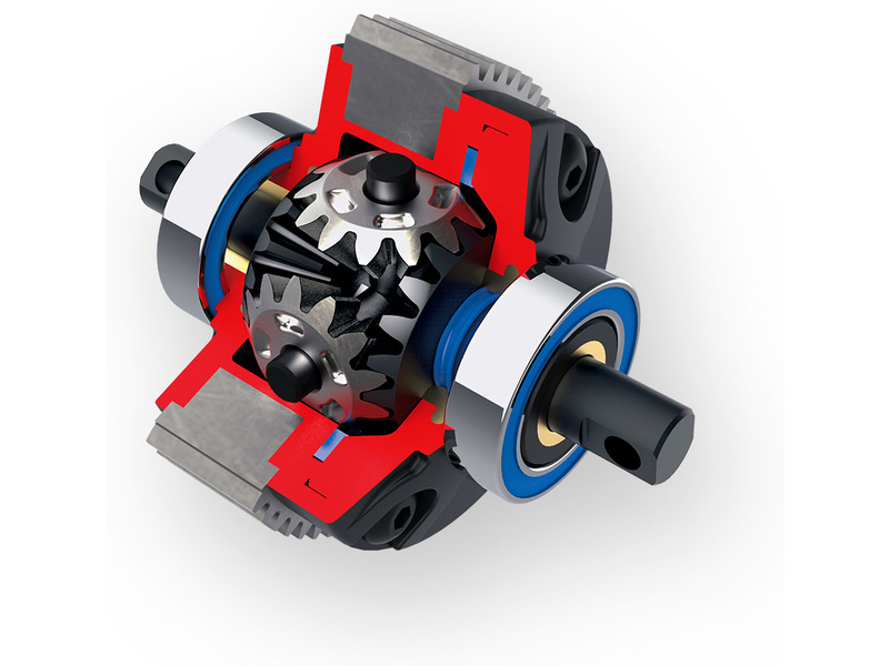 Odolný diferenciál s kovovými převody je utěsněn X-kroužky. Svornost diferenciálu lze vyladit pomocí olejů s různou viskozitou.