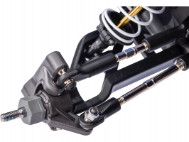 Odolné ocelové spojovačky umožňují nastavení odklonu kol a sbíhavosti pro specifické podmínky na trati. Koncovky s kulovými čepy jsou vyrobeny z vysoce pevného materiálu, aby nedošlo k uvolnění v závitu.