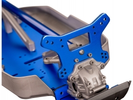Podvozek RC modelu tvoří lehký a odolný hliníkový plát o tloušťce 3.2 mm. Po celé délce jsou hrany tvarované pro zvýšení pevnosti. Obří přední a zadní příčné výztuhy, připevněné v šesti bodech, poskytují zvýšenou odolnost na nejvíce exponovaných místech při dopadu modelu, což jsou krky podvozku u zavěšení. Pro celkové propojení a vyztužení je použita patentovaná středová výztuha ve tvaru T. Stejně jako podvozek a středová výztuha jsou i věže tlumičů hliníkové s krásným modrým eloxováním.