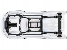 Podvozek RC modelu tvoří lehký a odolný hliníkový plát o tloušťce 3.2 mm. Po celé délce jsou hrany tvarované pro zvýšení pevnosti. Obří přední a zadní příčné výztuhy, připevněné v šesti bodech, poskytují zvýšenou odolnost na nejvíce exponovaných místech při dopadu modelu, což jsou krky podvozku u zavěšení. Pro celkové propojení a vyztužení je použita patentovaná středová výztuha ve tvaru T. Stejně jako podvozek a středová výztuha jsou i věže tlumičů hliníkové s krásným modrým eloxováním.
