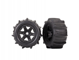 Na modelu jsou použity paprsková kola 3.8" s pneumatikami SledgeHammer 6,7", které byly inspirovány motokrosem. Vysoký tuhý dezén zajišťuje dlouhou životnost a trvanlivost. Tyto pneumatiky mají vylepšený systém spojení s kolem. Zatím byly tyto pneu na modelech Traxxas dostupné jako tunningový díl. Nyní jsou již v základu pro tento model!