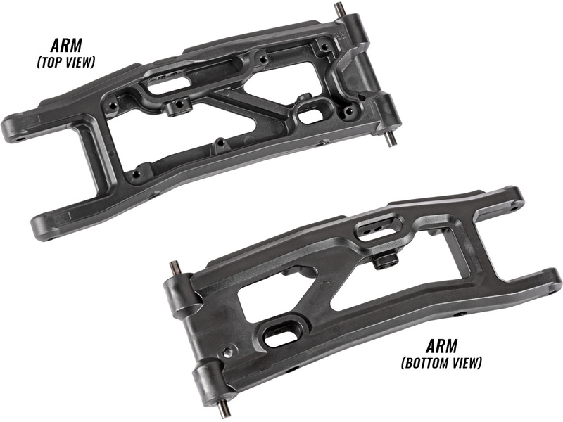 Podvozek RC modelu tvoří lehký a odolný hliníkový plát o tloušťce 3.2 mm. Po celé délce jsou hrany tvarované pro zvýšení pevnosti. Obří přední a zadní příčné výztuhy, připevněné v šesti bodech, poskytují zvýšenou odolnost na nejvíce exponovaných místech při dopadu modelu, což jsou krky podvozku u zavěšení. Pro celkové propojení a vyztužení je použita patentovaná středová výztuha ve tvaru T. Stejně jako podvozek a středová výztuha jsou i věže tlumičů hliníkové s krásným modrým eloxováním.