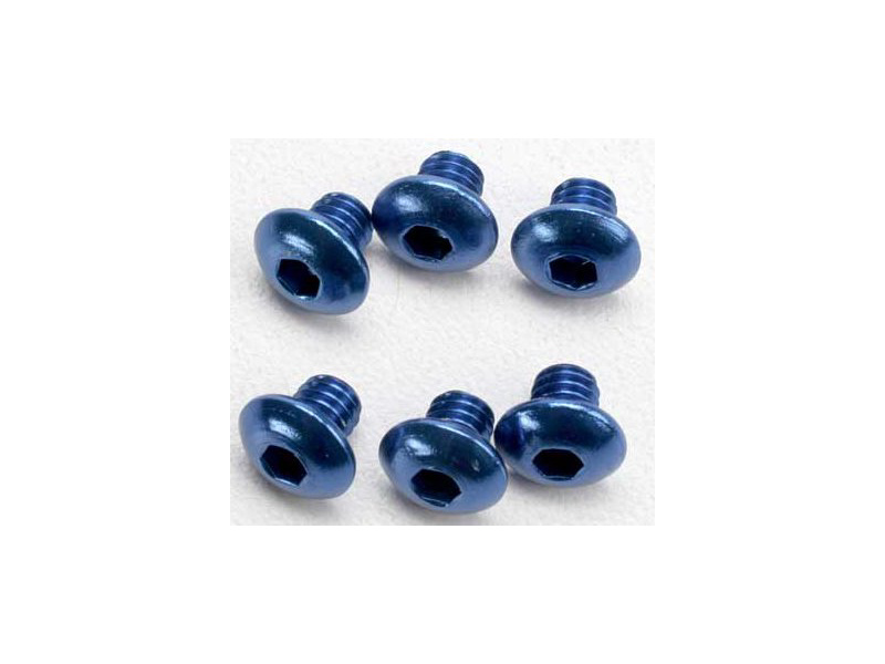 Traxxas šroub imbus s půlkulatou hlavou M4x4 mm, modře eloxovaný hliník. Balení obsahuje 6 ks.