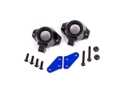 Tunignový díl pro RC model auta Traxxas Sledge. Traxxas těhlice přední hliníková modře eloxovaná (levá a pravá).