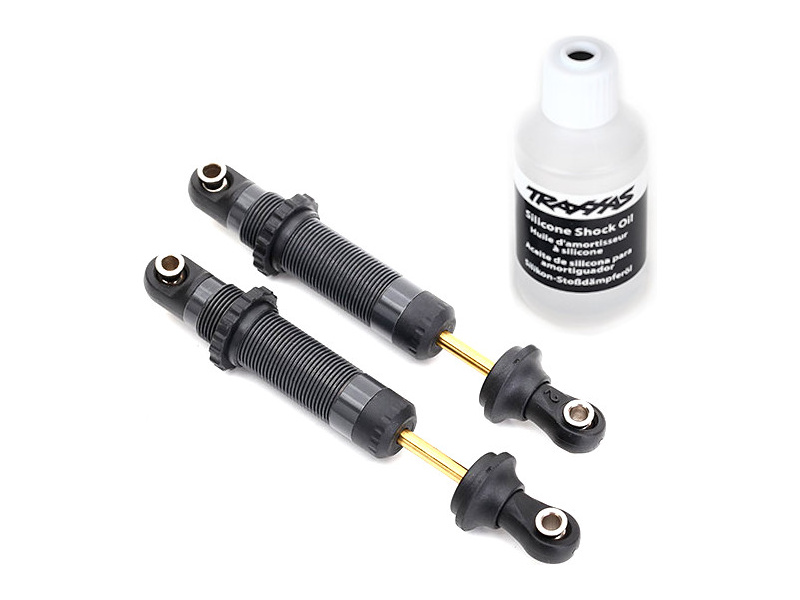 Tuningové hliníkové tlumiče GTS s teflonovou (PTFE) vložkou a pístnicemi s povlakem nitridem titanu (TiN) určeny pro podvozky RC modelů aut Traxxas TRX-4.