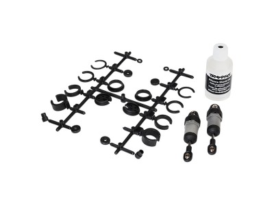 Tlumič Ultra Shocks short (krátký) šedý (2 ks). Olejem plněné tlumiče Ultra Shocks využívají X-kroužky pro dokonalé utěsnění a super hladký výkon. Sestavený tlumič (2), podložek pod pružiny a oleje do tlumičů. Náhradní díl pro RC modely aut Traxxas, podvozek 4-Tec. Pružiny se prodávají samostatně.