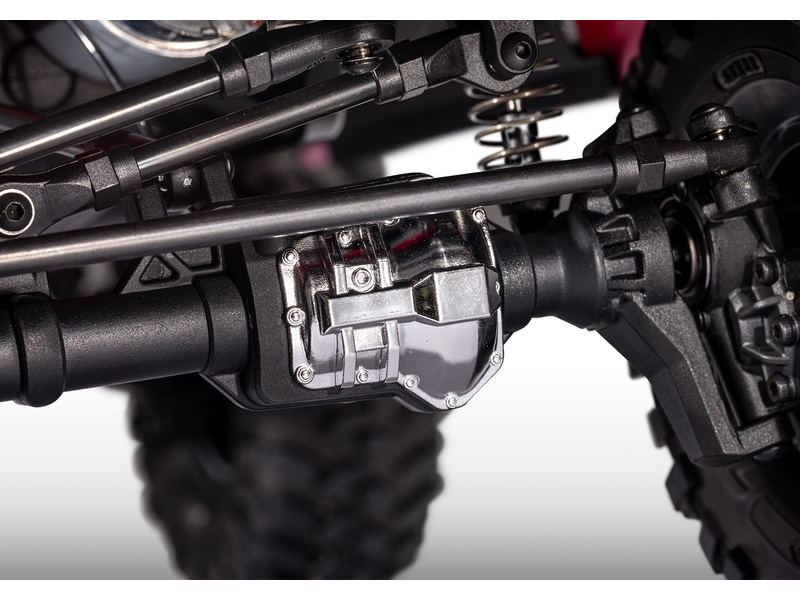 Továrně instalovaná sada Long Arm Lift kit zvyšuje světlou výšku o 2.5 cm. To umožnilo použití větších kol 2.2” s pneumatikami Canyon Trail. S tímto vybavením bude RC model v terénu nepřekonatelný.