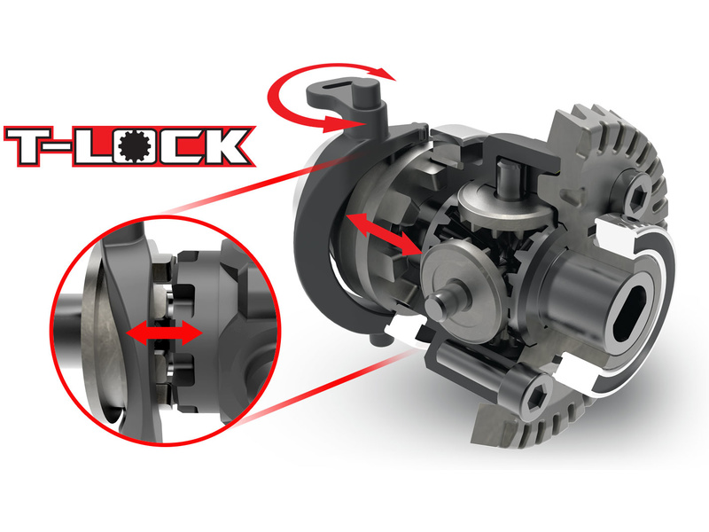 Uzávěrky diferenciálů jsou nezávisle řízeny 2 servy. Síla ze serv je přenášena pomocí bovdenů do diferenciálů. Uzávěrky se řídí tří-polohovým přepínačem na vysílači a poskytují následující kombinace: