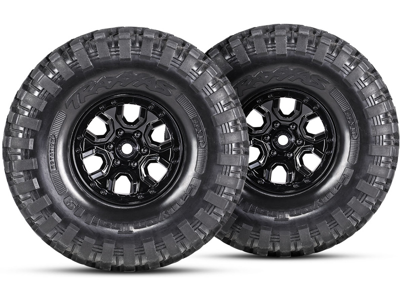 Pneumatiky Canyon Trail 1.9" z extra měkké směsi S1 jsou nalepeny na replice originálních kol Wildtrack. Unašeč kol má 12 mm. RC model auta je rovněž vybaven plně funkčním rezervním kolem.