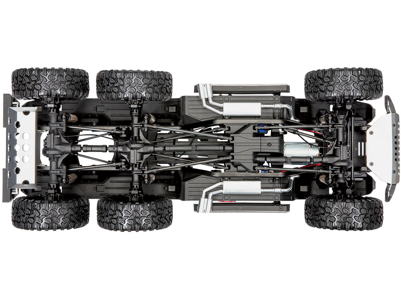 Expediční RC model Traxxas TRX-6 Mercedes G 63 6x6, je postaven na šasi TRX-4. Všechny přednosti toho šasi, jako jsou portálové nápravy, čtyřbodové zavěšení, dálkově ovládané diferenciály, dálkově ovládaná dvourychlostní převodovka, vysoký úhel zatáčení kol a další, byly zachovány a navíc byla přidána další náprava. Unikátní náhon 6x6, tak bude v terénu nepřekonatelný. Výborné zpracování podtrhuje bezsponková karoserie pro rychlou a snadnou výměnu akumulátoru. Věrně zpracovaná karoserie zachovává všechny detaily, včetně množství chromovaných dílů a čirých oken, která dotvářejí 3D vzhled RC modelu.