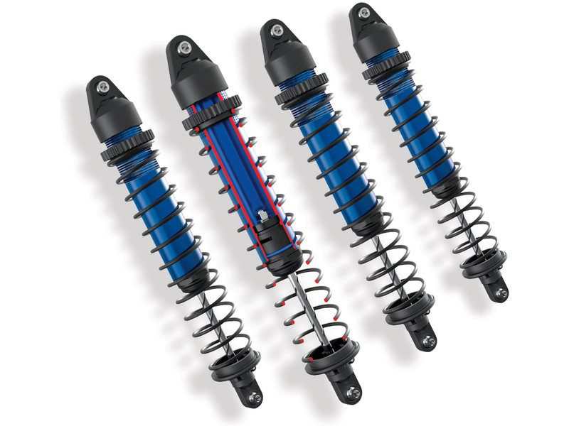 Masivní tlumiče X-Maxxu GTX mají pístnice o průměru 5,2 mm, jsou vyrobeny z vysokopevnostní oceli. Uchycení tlumičů k ramenům a věži je duální. Veškeré čepy jsou vyrobeny z oceli o průměru 4 mm! Dobře dimenzované prostorové věže tlumičů umožní jízdu i ve velmi těžkém terénu.