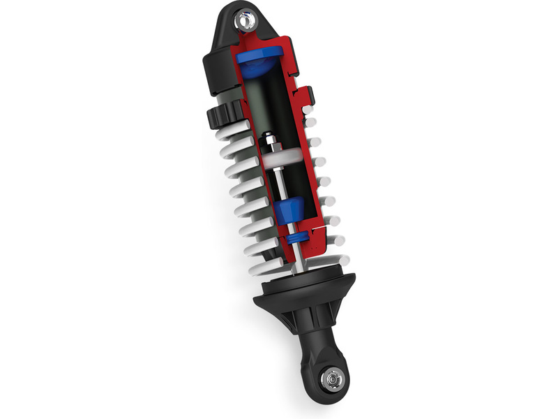 Traxxas tlumič GTR hliníkový červený (2ks pření, 2ks zadní) se silikonovým olejem. Konstrukce GTR má hliníkové tělo se závitem a kroužkem pro přesné nastavení předpětí. Chromované hřídele m...