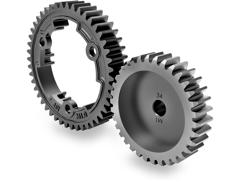 Kalená CNC obráběná ozubená kola náhonu zadního diferenciálu se spirálovým tvarem ozubením. Spirálové ozubení přináší tiší chod a plynulý přenos momentu. Tunigová varianta k položce TRA6879.