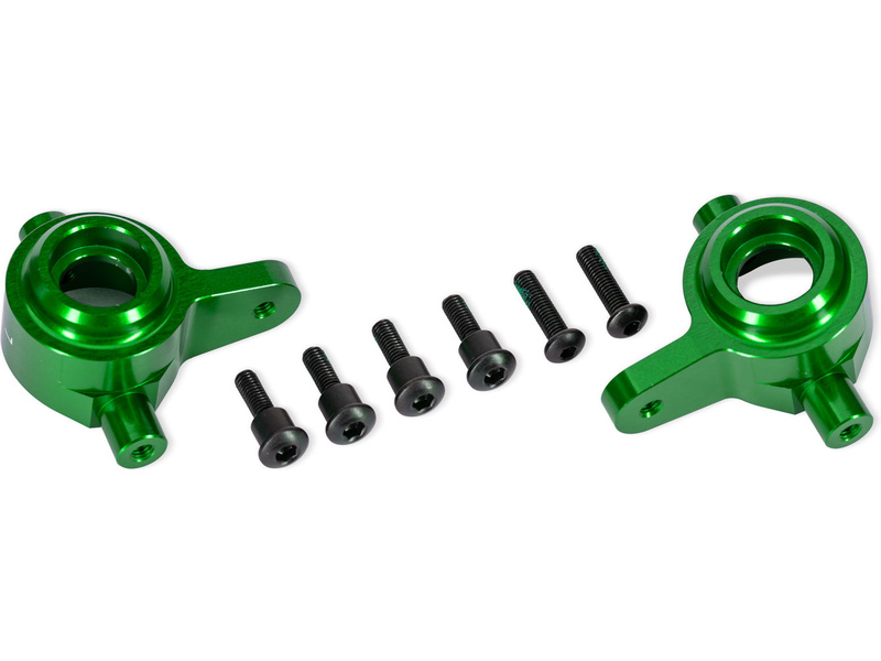 Traxxas závěs těhlice hliníkový zelený (pár). Vyrobeno z vysoce odolného barevně eloxovaného hliníku 6061-T6. Určeno pro použití se sadou #9080 a modely s instalovanou touto sadou. Není určeno pro standardní zavěšení.