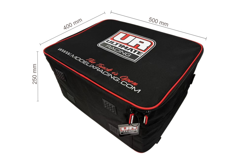Celkové rozměry tašky 500x400x250 mm, kapacita 16 sad kol pro 1/8 buggy.