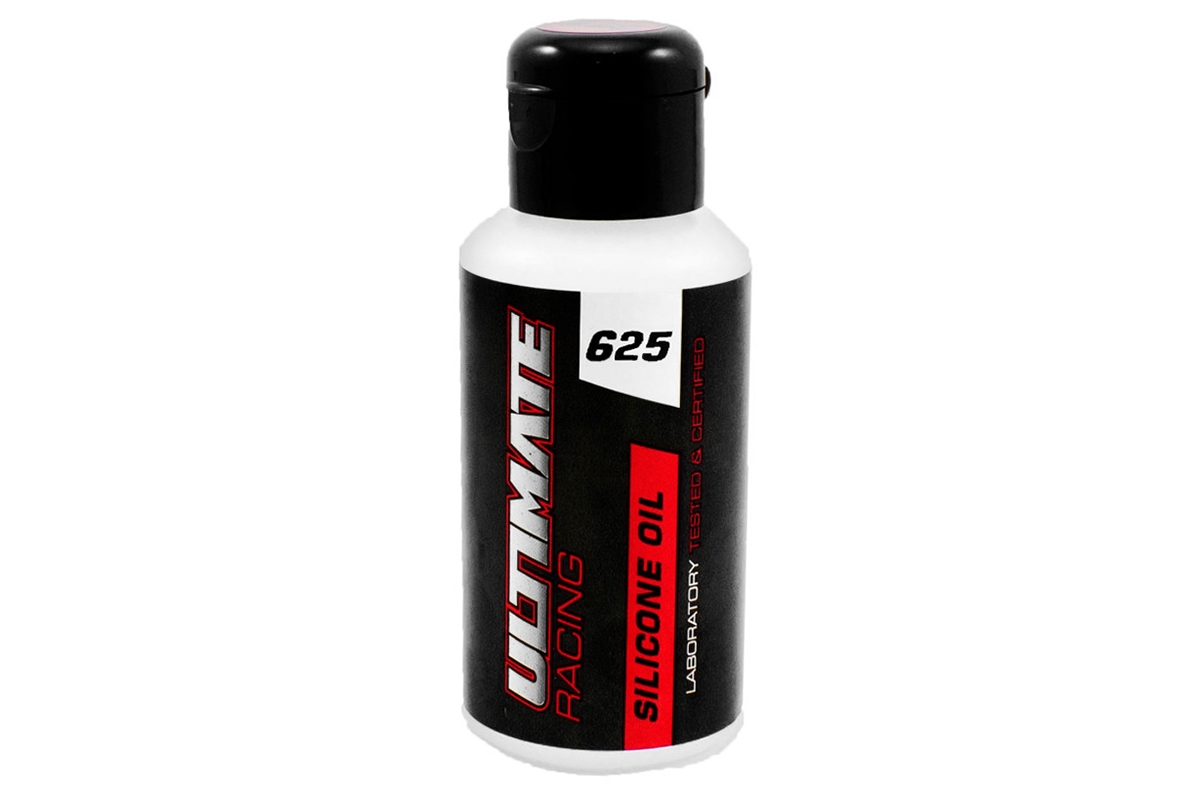 Jedná se o 75 ml lahvičku silikonového oleje Ultimate Racing 625 cSt, který se používá do olejových tlumičů. Tlumičový olej Ultimate Racing je vyroben ze 100% čistého silikonového oleje a v horkém počasí nezřídne a v chladném počasí nezhoustne. Čím vyšší je viskozitní číslo oleje, tím je olej hustší. Silikonový olej Ultimate Racing obsahuje aditiva proti tření, která zajišťuje životnost tlumičů a minimalizují změny viskozity.
