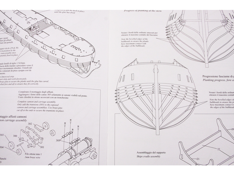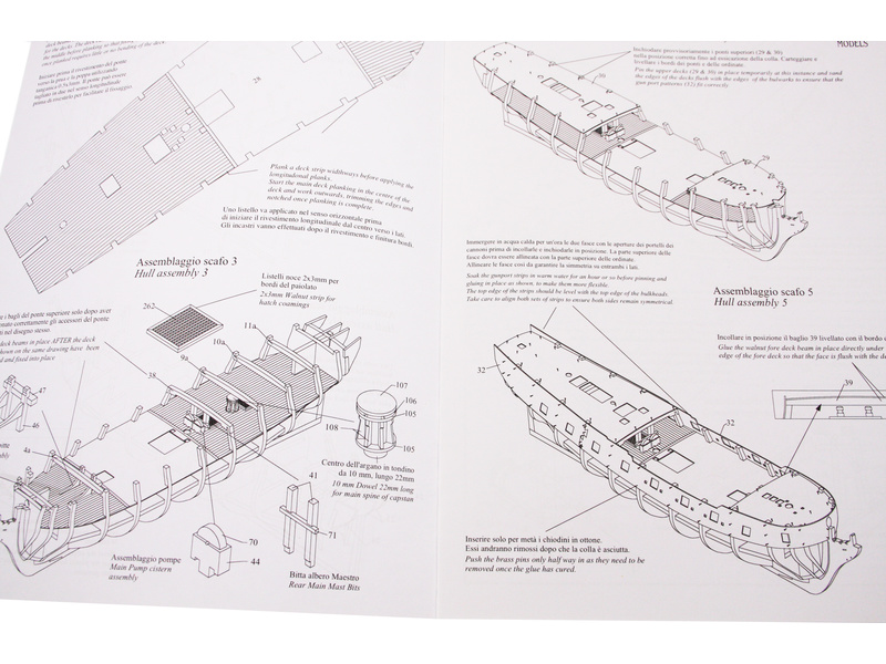 Set obsahuje kompletní sadu výkresové dokumentace modelu v měřítku 1:1 s postupem stavby, na výkrese jsou pečlivě označeny díly a je zde i seznam jednotlivých součástí modelu.