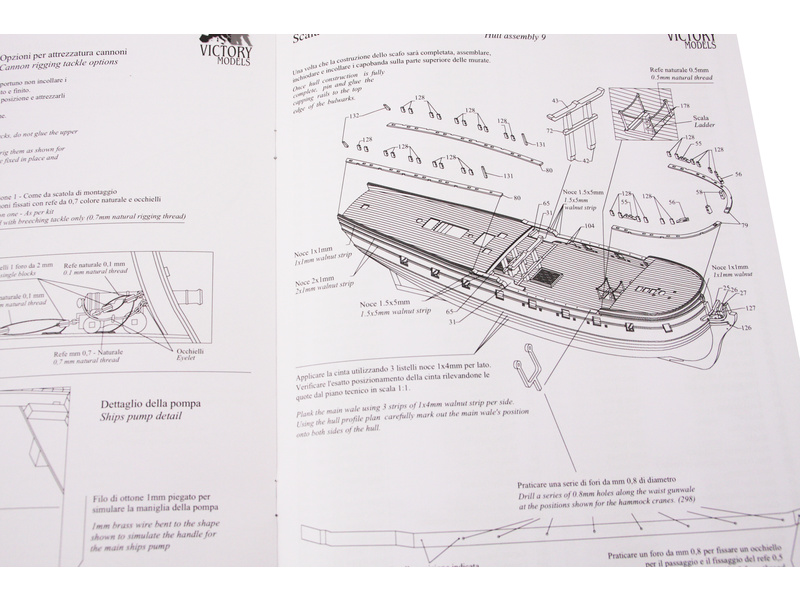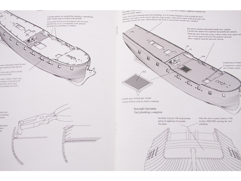 Souprava obsahuje leptané mosazné díly (až na vesla a člunové kování, stejně jako mnoho dekorací), laserem řezané dřevenné díly, čluny, leptané měděné desky pro podmořské plavidlo, pozoruhodný soubor vlajek a velmi podrobné výkresy a plány. Žebra a kýl jsou řezány laserem z 5mm překližky, další části jsou vyrobeny z pevného ořechu, překližky.