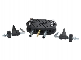 Praktický držák pojme díky nastavitelným kolíkům díly nejrůznějších tvarů. Držák se k pracovní desce přichytí dvěma stolními svorkami.