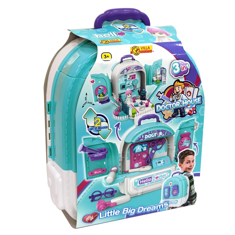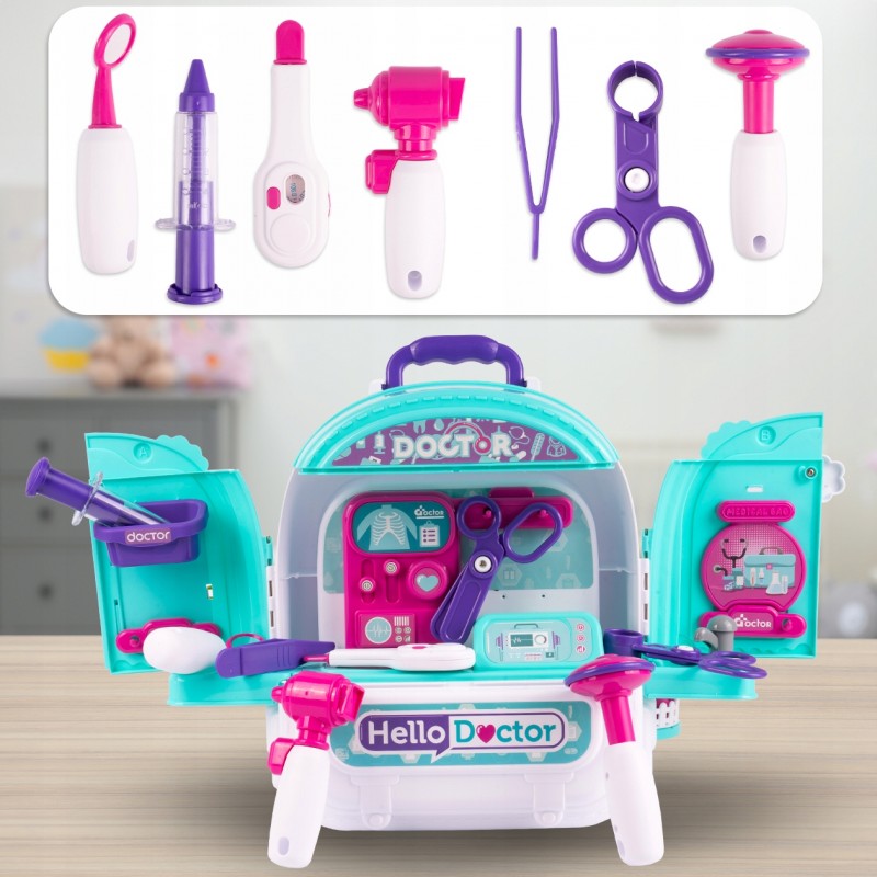 Tato sada poskytuje všechny potřebné nástroje pro malého lékaře, aby předstíral, že poskytuje komplexní zdravotní péči. Zahrnuje širokou škálu příslušenství, od teploměru po stetoskop, který dětem umožňuje provádět různé lékařské scénáře a podněcuje jejich představivost.Batoh kombinuje tři různé světy: nemocnice, domovla panenky a lékařský set. Díky této všestranné kombinaci mohou děti zastávat různé role, od lékaře nebo zdravotní sestry až po ošetřovatele panenek nebo pacienta. Tato jedinečná kombinace podněcuje kreativitu a představivost a umožňuje dětem prozkoumat různé herní scénáře a rozvíjet sociální dovednosti a empatii. Sada 3v1 je nejen zdrojem zábavy, ale také cenným poučením o péči o druhé a práci ve zdravotnictví.3v1 sada kombinuje nemocnici, domeček pro panenky a lékařskou sadu.Veškeré příslušenství je uloženo v praktickém kufříku, který vám umožní hrát kdekoli. Hraním lékařských rolí se děti učí empatii a péči o druhé, podporují rozvoj jejich osobnosti.