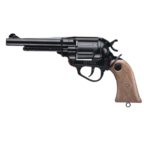 Nevada pistole /kolt kovová, 12 ran (pistole na kapslíky, na kapsle) barva černá.Tato propracovaná pistole/kolt kovová, patří mezi oblíbené dětské kapslíkové zbraně. Délka 20 cm. S touto parádou budeš hvězdou každého karnevalu.