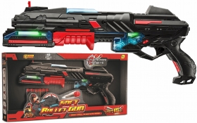 2. Skvělý design a praktičnost: S délkou 50 cm je pistole dostatečně kompaktní pro snadné držení a přenášení, avšak dostatečně robustní, aby poskytovala realistický pocit z držení skutečné zbraně. Elegantní design zaujme každého, kdo ji uvidí. Pistole svítí.