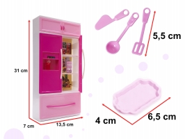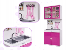 Krásná růžová kuchyňka pro panenky, LED osvětlení, zvuky, 48 cm, 4 moduly.