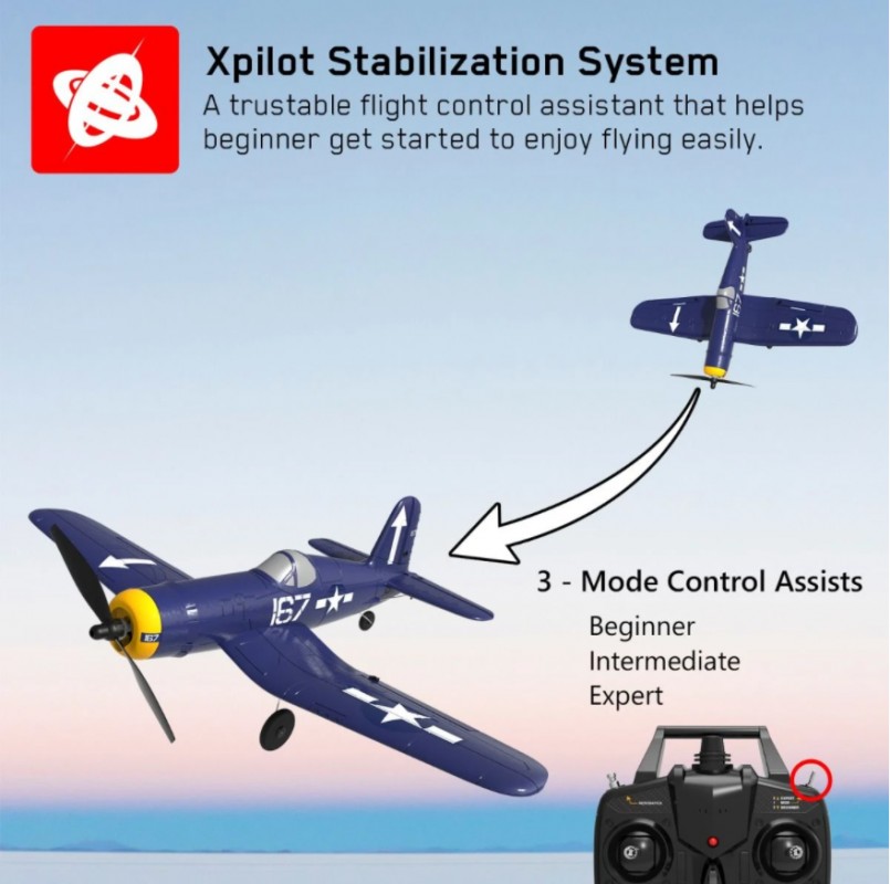 Model letadla S-idee Volantex RC Corsair se 6-osým gyroskopem, 2.4 GHz je skvělou volbou pro začátečníky, lehký EPP materíál, vynikající letové vlastnosti, RTF