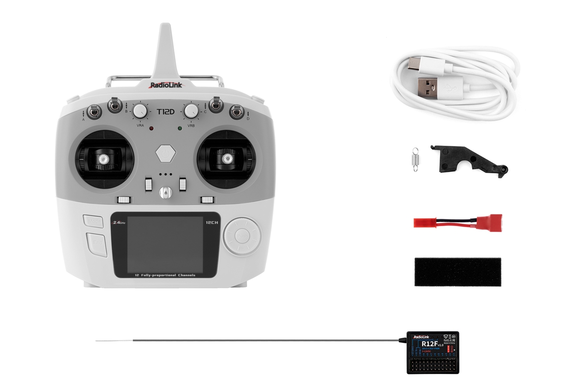 T12D je dvanáctikanálový počítačový vysílač pro rekreační modeláře umožňující nastavování základních funkcí, jako je velikost a smysl výchylek, disponuje i celou řadou mixů pro ovládání široké škály modelů – motorových akrobatických modelů, větroňů, multikoptér, aut a jiné pozemní techniky i lodí. Pracovat může s interním VF dílem s přenosovým systémem FHSS (stejný jako u T8FB/T8S nebo u pistolových vysílačů RadioLink R4GS/R6GS/R8X), ale umožňuje i připojení externích VF modulů ELRS nebo TBS Crossfire s dlouhým dosahem. Vyznačuje se praktickou skříňkou dokonale padnoucí do ruky s klasickým, léty prověřeným ergonomickým rozmístěním ovládacích prvků.