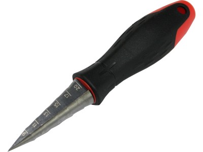 Ruční ocelový nástroj pro vykružování otvorů do průměru až 20mm. Kuželový břit o délce 60mm postupně ubírá po obvodu materiál a kalibruje otvor. Délka ručky je 108 mm.