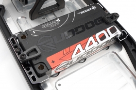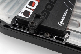 Držák je vyroben z vysoce kvalitního hliníku 7075-T6 s černě eloxovanou povrchovou úpravou a stříbrnými frézovanými hranami a poskytuje pevnost i styl. Lehké karbonové zámky udrží krátké LiPo akumulátory pevně na místě a zabrání jejich pohybu při zrychlení nebo po dopadu.