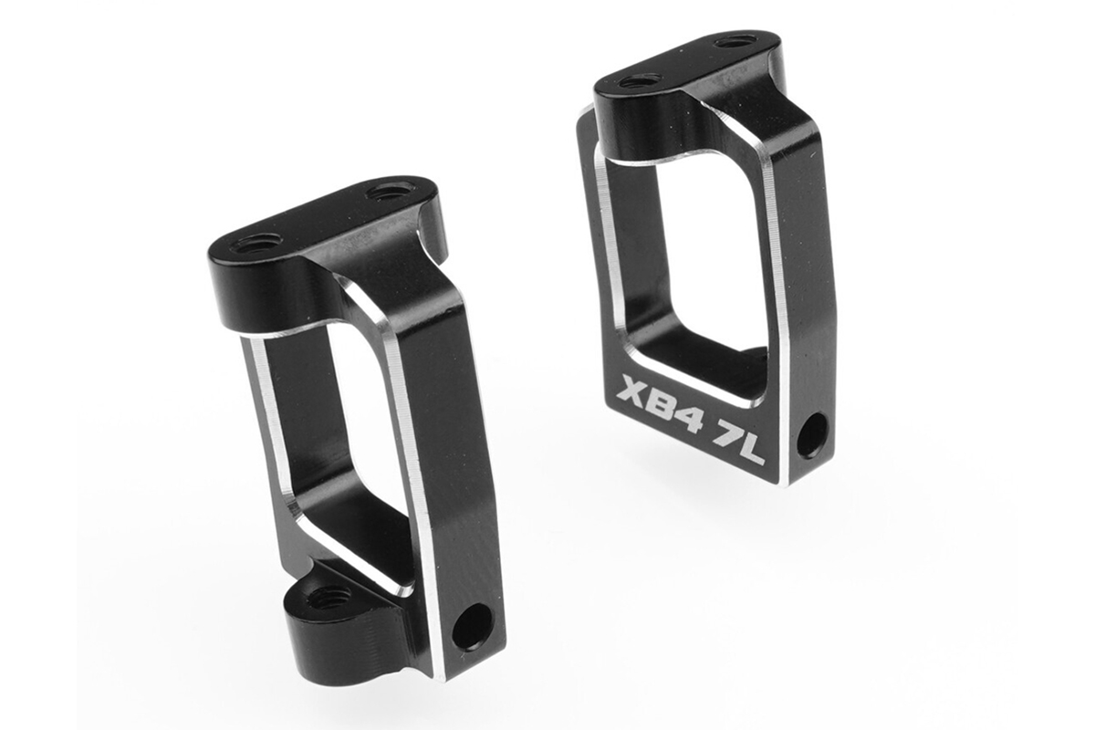Tyto hliníkové závěsy předních těhlic jsou navrženy tak, aby nahradily původní kompozitové díly, a jsou vhodné pro nejnovější model XRAY XB4 2025 i pro všechny předchozí modely XB4.